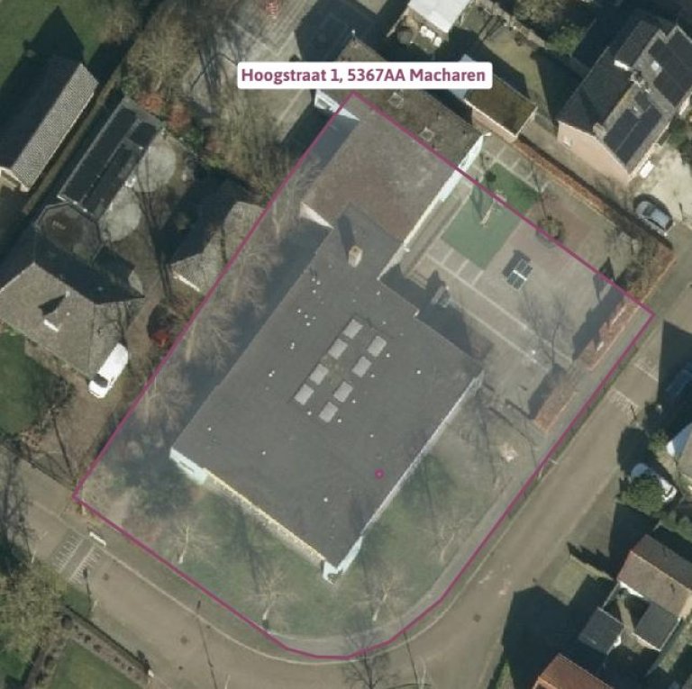 Het gebouw ligt aan Hoogstraat 1 te 5367AA Macharen. Het is een voormalige basisschool en heeft momenteel een maatschappelijke functie. De op het terrein aanwezige speelplaats en voorzieningen behoren niet tot het gebruiksrecht.